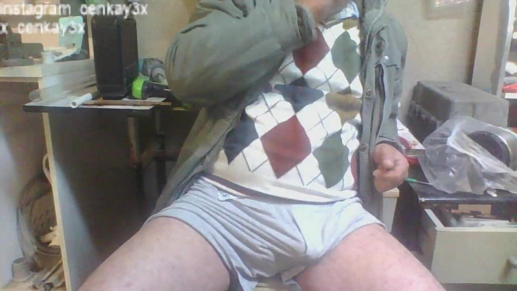 Master Turk is playing with his balls in the workshop and has opened a broadcast and is being watched.