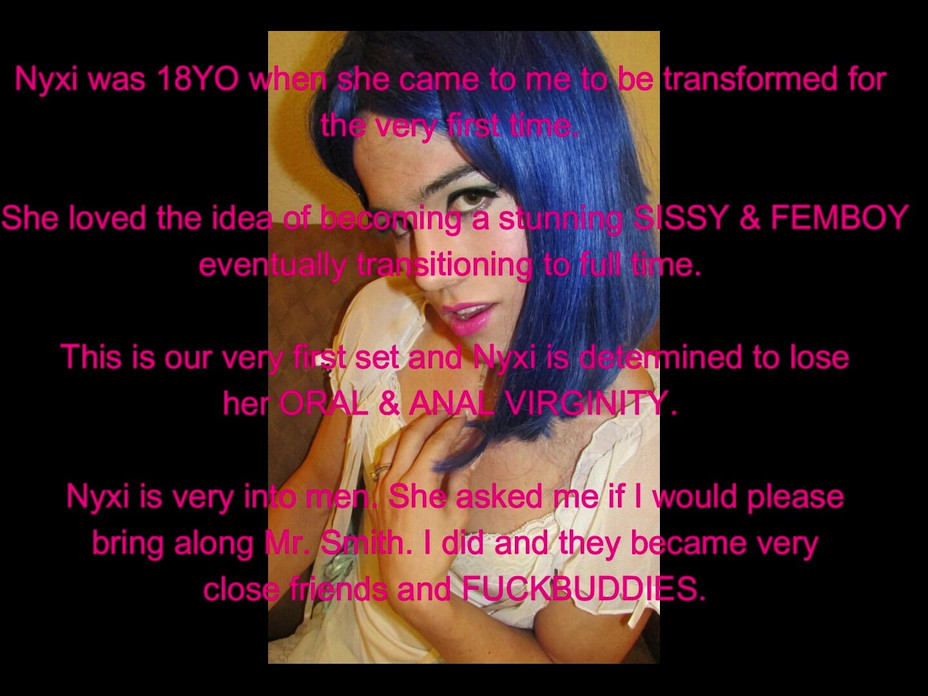 For her VERY FIRST TIME Nyxi was transformed MtoF by Tia Tizzianni and trained by Mr. Smith. Watch as the lil FEMBOY with her short cute dark hair is transformed from boi to cute lil submissive PLAYTOY and FUCKTOY. She not only goes thru total transformation into different hot looks but is used ORALLY & ANALLY. Watch as the lil slut sucks, fucks and takes LOADS of CUM! Multiple different outfits and scenes in this video. HOT NYXI STUFF.