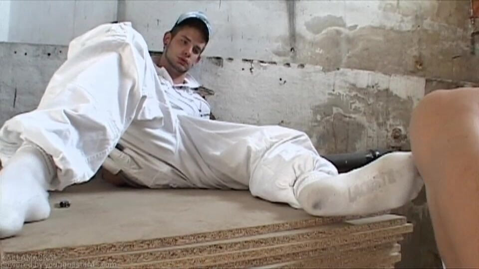 07:09Jens and Basti are having a smoke when Jens notices that Basti is interested in his sneaks. He offers his mate something bigger to suck on and gives him a taste of his hard cock and smelly socks.