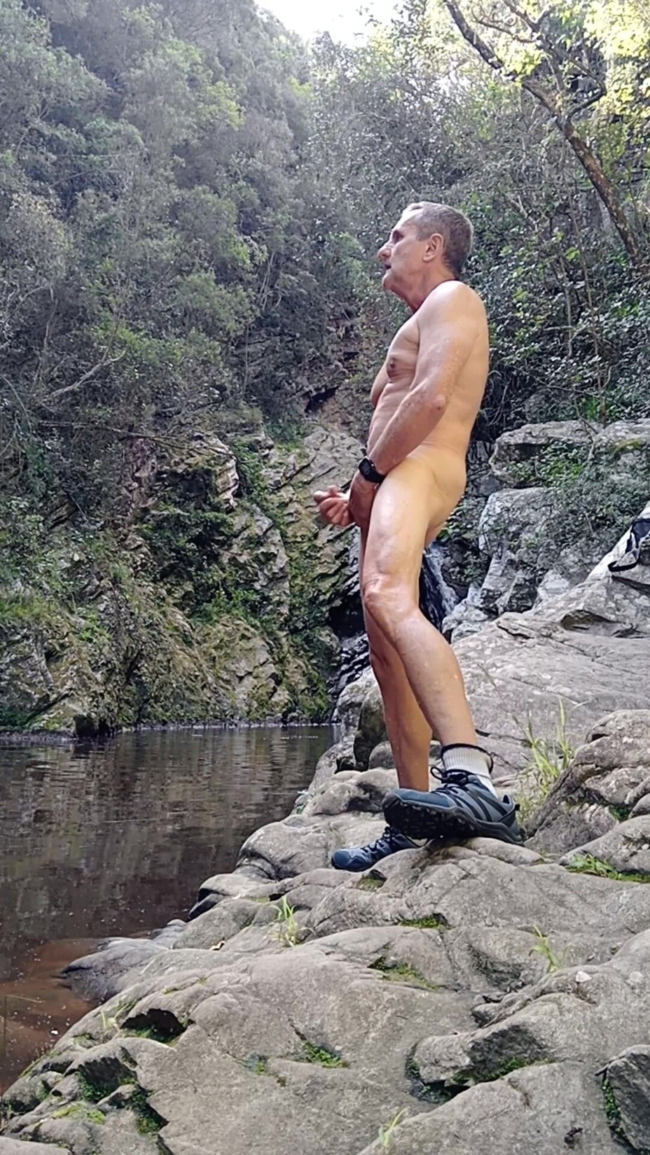 ハイキングでプールで裸になり、大きな負荷を発射しました