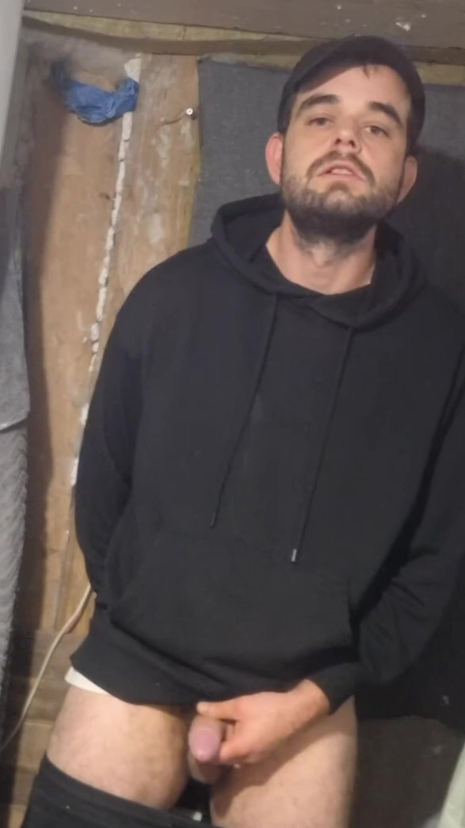 Skater squirting in an abandoned building, wearing black VANS things, a cap and experiencing an extra big orgasm and wearing VANS shoes