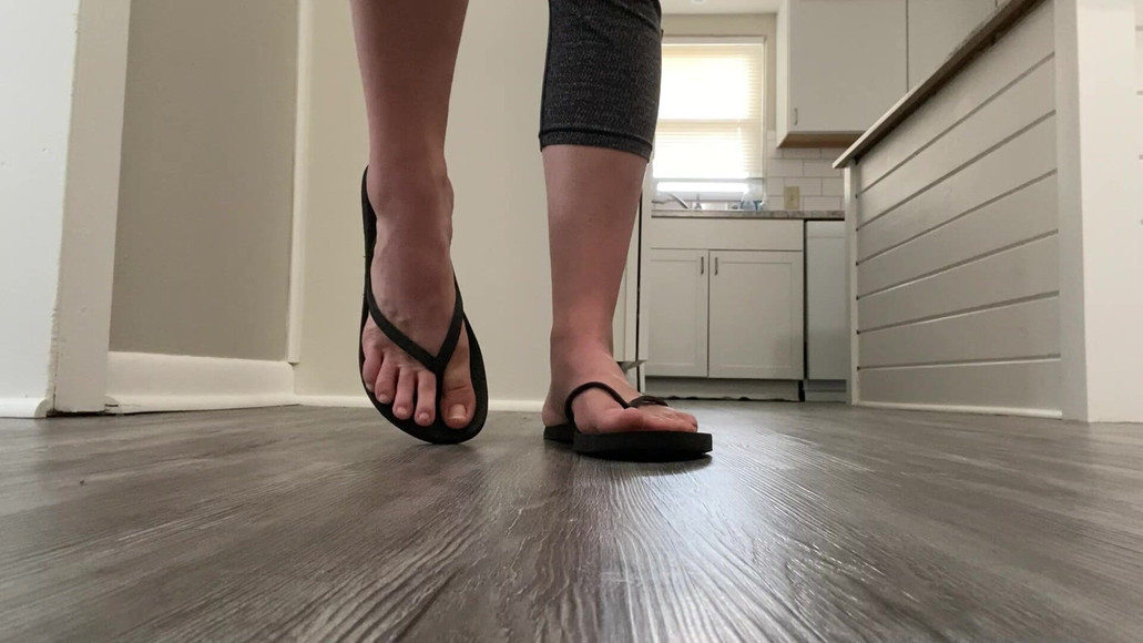 Mostrando minhas unhas e pés naturais nos meus chinelos pretos. Dedo do pés balançando e chinelo pendurados incluídos!