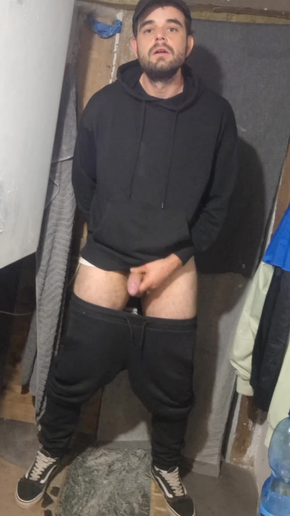 Skater squirting in an abandoned building, wearing black VANS things, a cap and experiencing an extra big orgasm and wearing VANS shoes