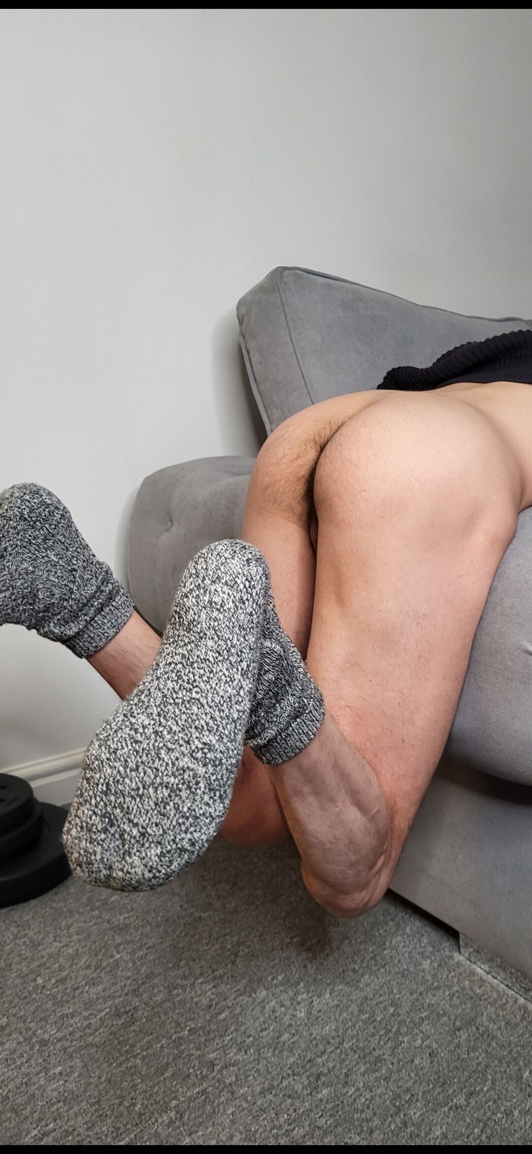 British Boys wrapped up for the winter, Smart Jumper, a Thick Boot Sock, Skin on Skin. Keeps the cocks ROCK Hard.
