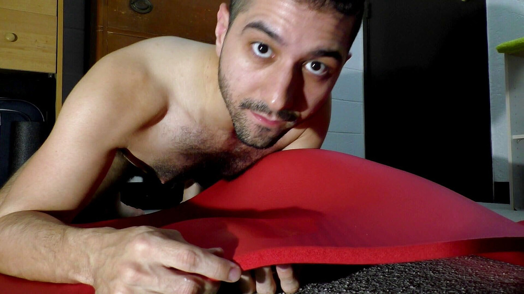 Bending over and shooting a freshly-fucked load out of my ass--and then slurping it up like the good cock-locked hole-slave I am.