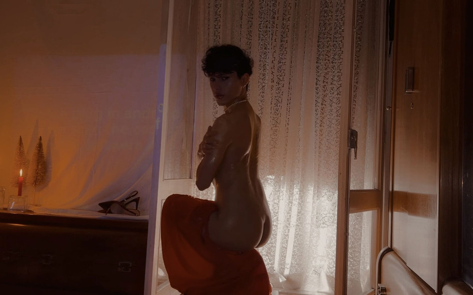 "Adult cinematography: red dress, heels, music, headphones and PH’s finest BOOM ever."
