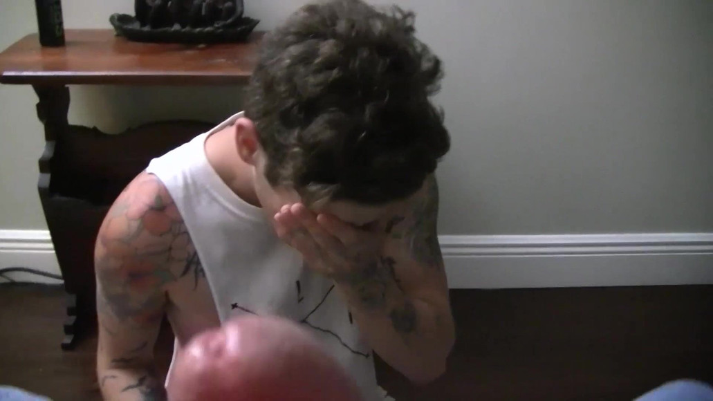 Our 19 year old resident with all the tats is a misbehaving little fuck. He really gets on the house managers' nerves almost all the time. After having an unauthorized guest over the night before, we had all had enough. Fortunately, I was horny and needed to bust a load. Unfortunately, this little prick is a squirming 19 year old with an ass that's almost too tight to plow. Getting my dick inside him was harder that pouunding a fence post into granite. The video begins by us trying to put him in his place. I step on him and spit on him. Then I make him go down on my cock. His mouth is small just like him, so it felt good when he wrapped his lips around my dick.