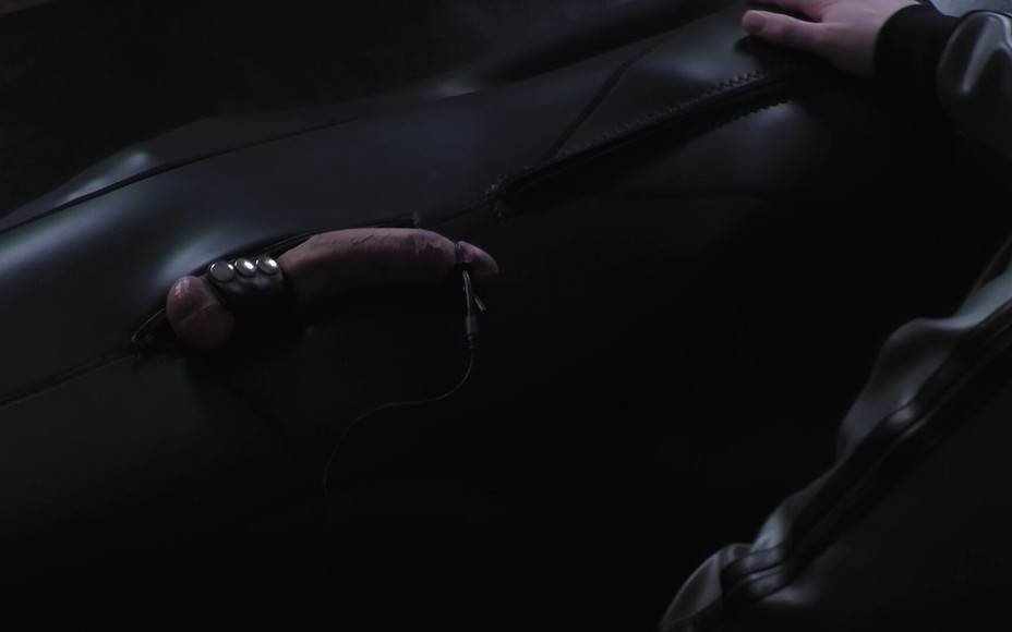 For this rubber gimp it will be a long night. Fixed in a bag, cut off from the outside world with a gas mask and completely immobile he feels how his slave cock is slowly pulled out. His balls are squeezed hard and fixed with a ball stretcher. He feels the cold electrodes on his dick and suddenly the electricity flows through his manhood. The intensity is increased further while his master controls his breathing. When his master cum on the mask he cannot resist and will spend the night immobilized on the table while the electricity cooks his cock without mercy.