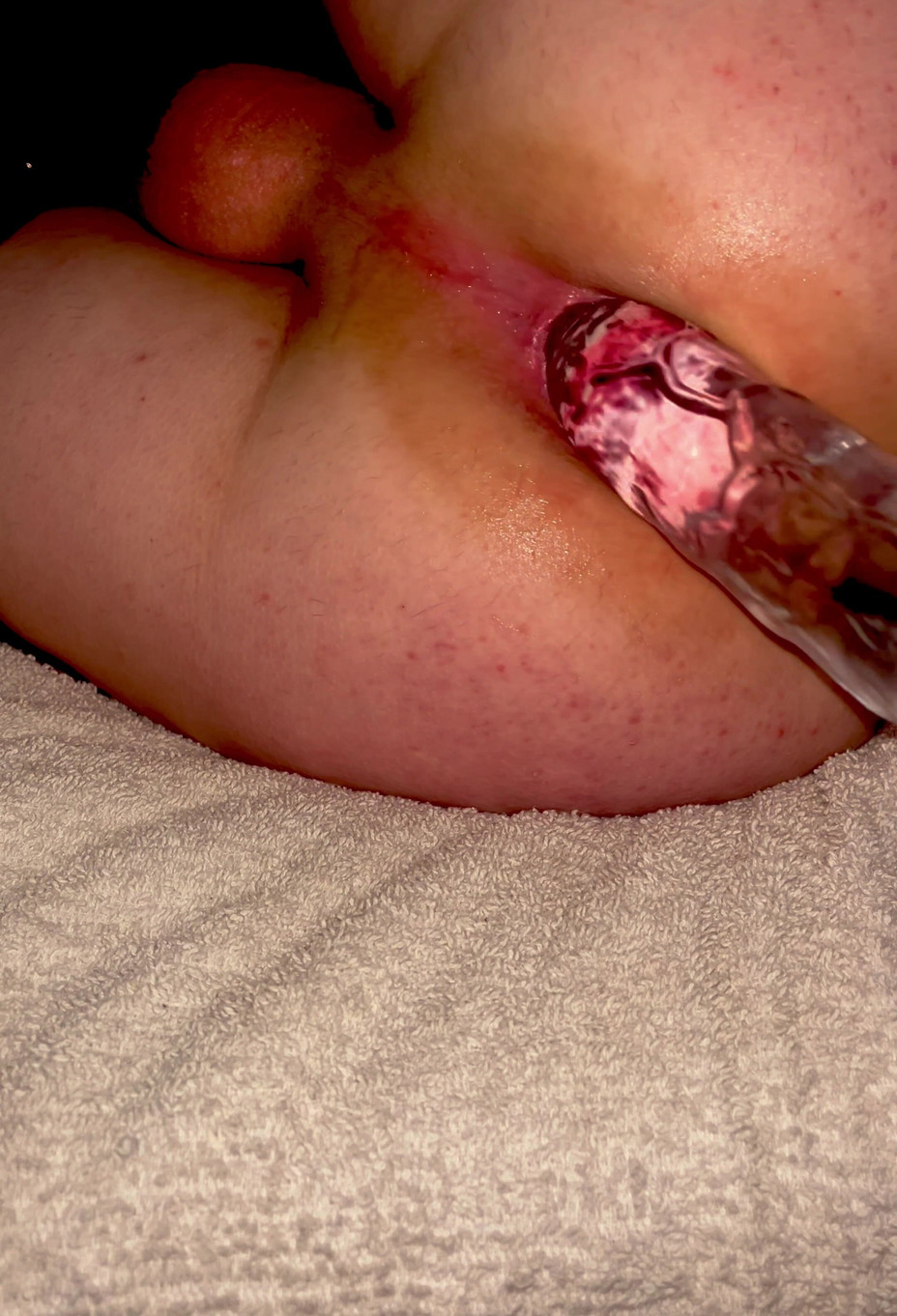 I was horny again and needed it in my fat ass. Then I grabbed my dildo as quickly as possible and off I went. It just makes me horny when the dildo slowly slides in, it's a feeling, I can hardly describe it, just horny I say.