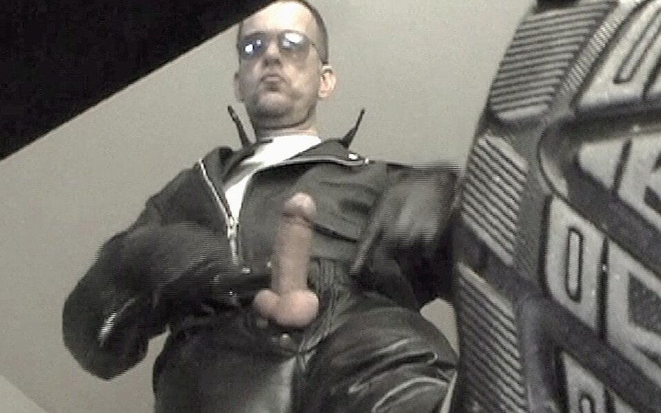 GERMANE_XL fully leathered showing his big Bulge, a long XL Cockplay and CUSHOTS XXL