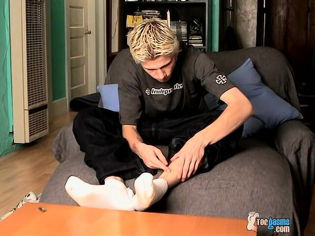 Gorgeous straight boy Ian has a great body and an even greater cock. It's big enough to satisfy even the most greedy, but it's not all about that dick and the sight of him stroking some cum from it. He's showing off those sexy feet for us in this solo too, and they are some of the most kissable feet!