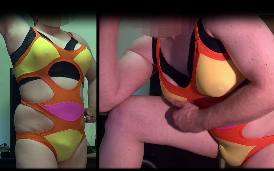 穿着剃光身体的泳衣,用我的E杯假胸部摆姿势,并洗澡弄湿。