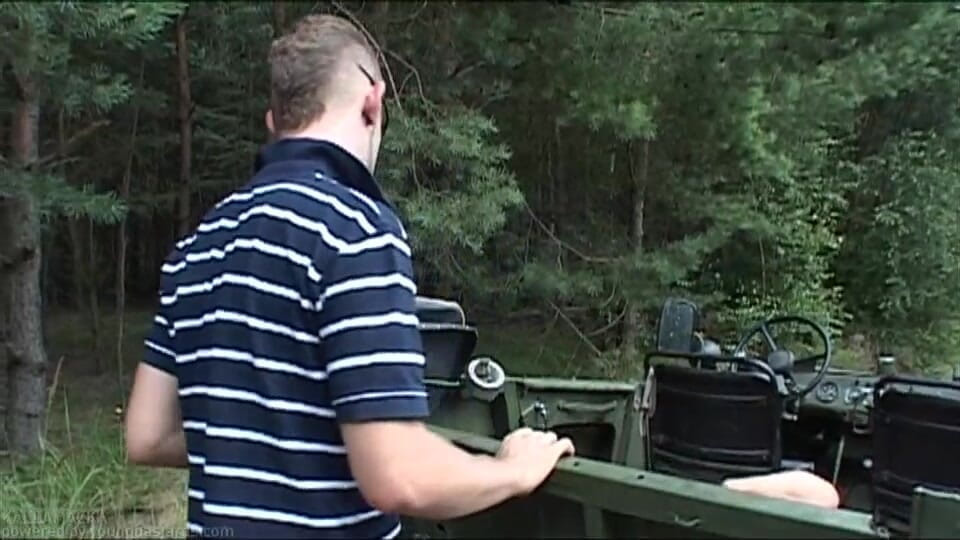 In the forrest Jens takes advantage of his prisoner Ruben. Right on the truck bed Ruben has to suck his cock and lick his sneakers. Then Jens sits down on his face and gets his ass cleaned while smoking a cigarette. After he has shot a huge load, the mean top drives away and leaves his toy in the woods.